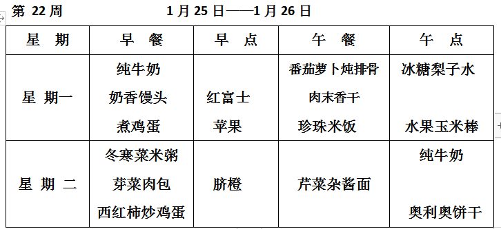 柳城幼儿园第二十二周食谱
