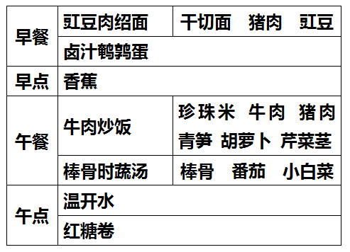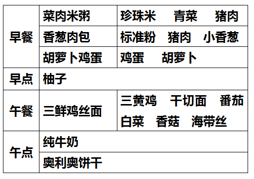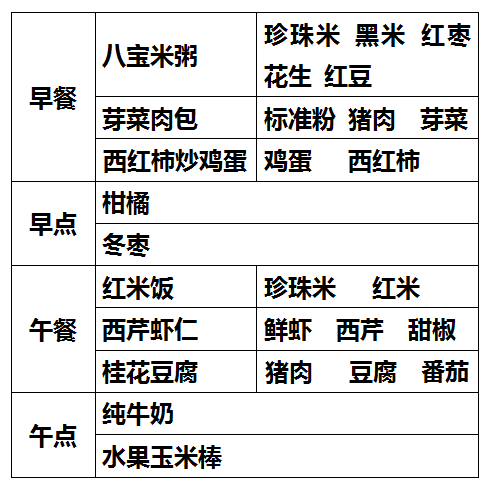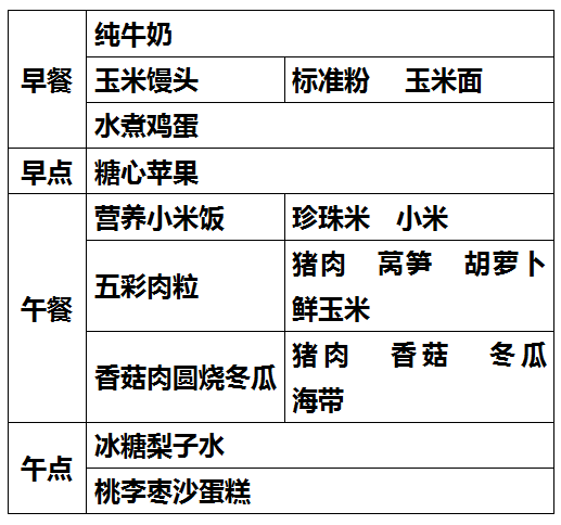 柳城幼儿园第八周食谱