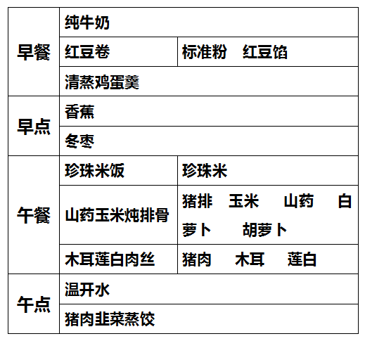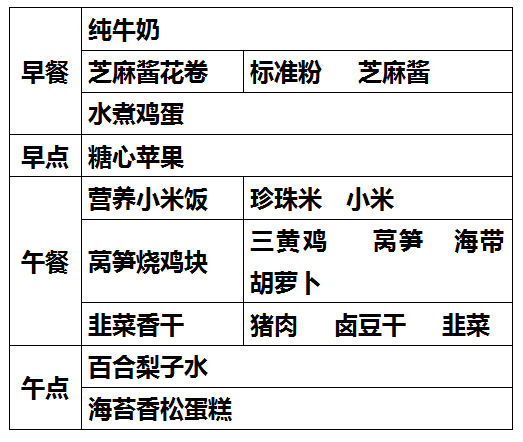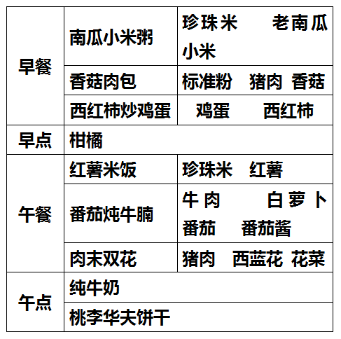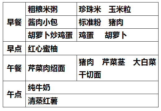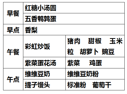 柳城幼儿园第九周食谱