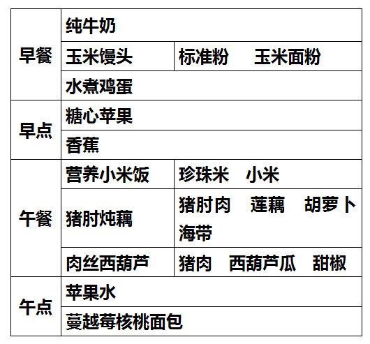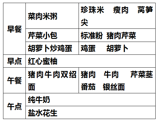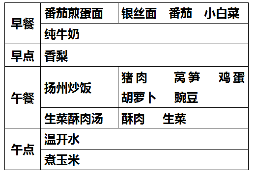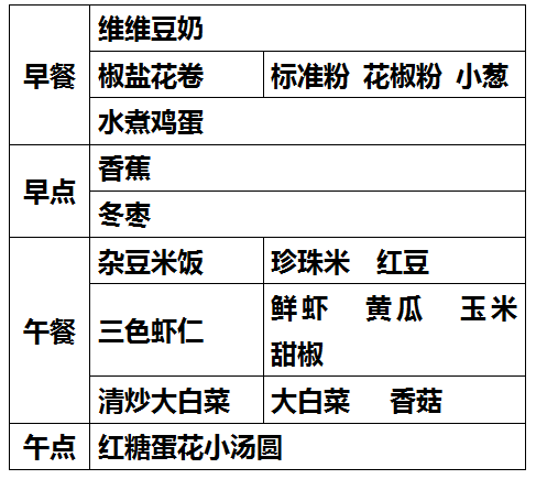 柳城幼儿园第十周食谱