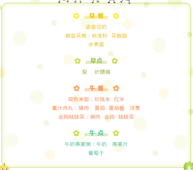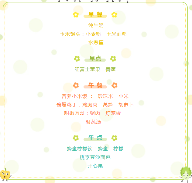 柳城幼儿园2022春季第一周食谱