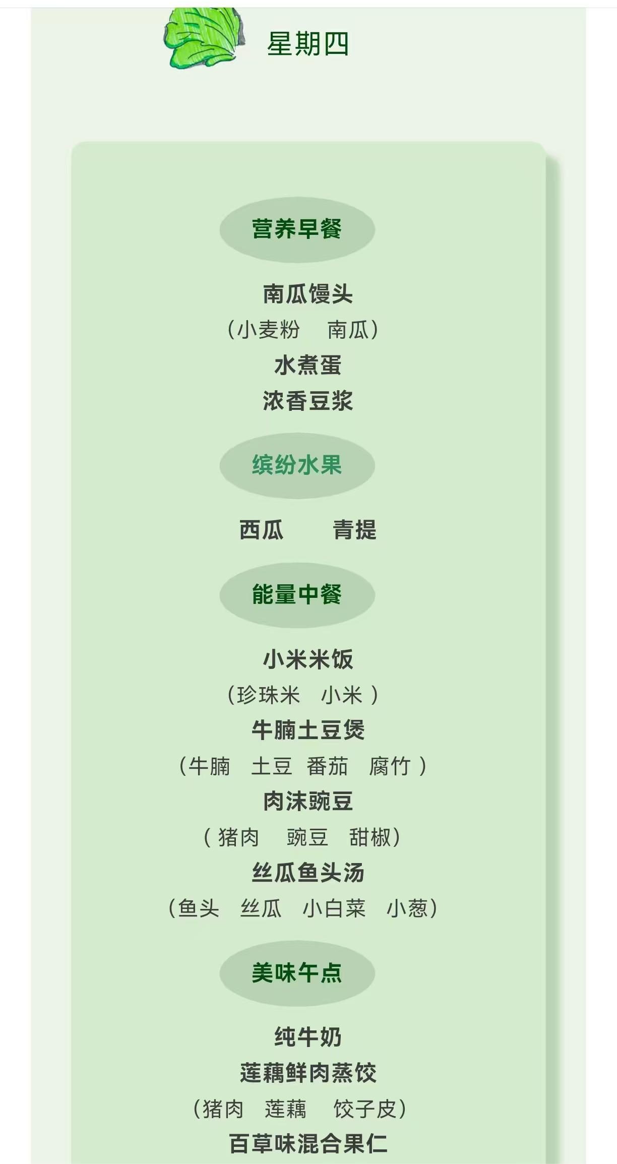 【亲宝“食”光 】柳城幼儿园2025秋季第1周食谱