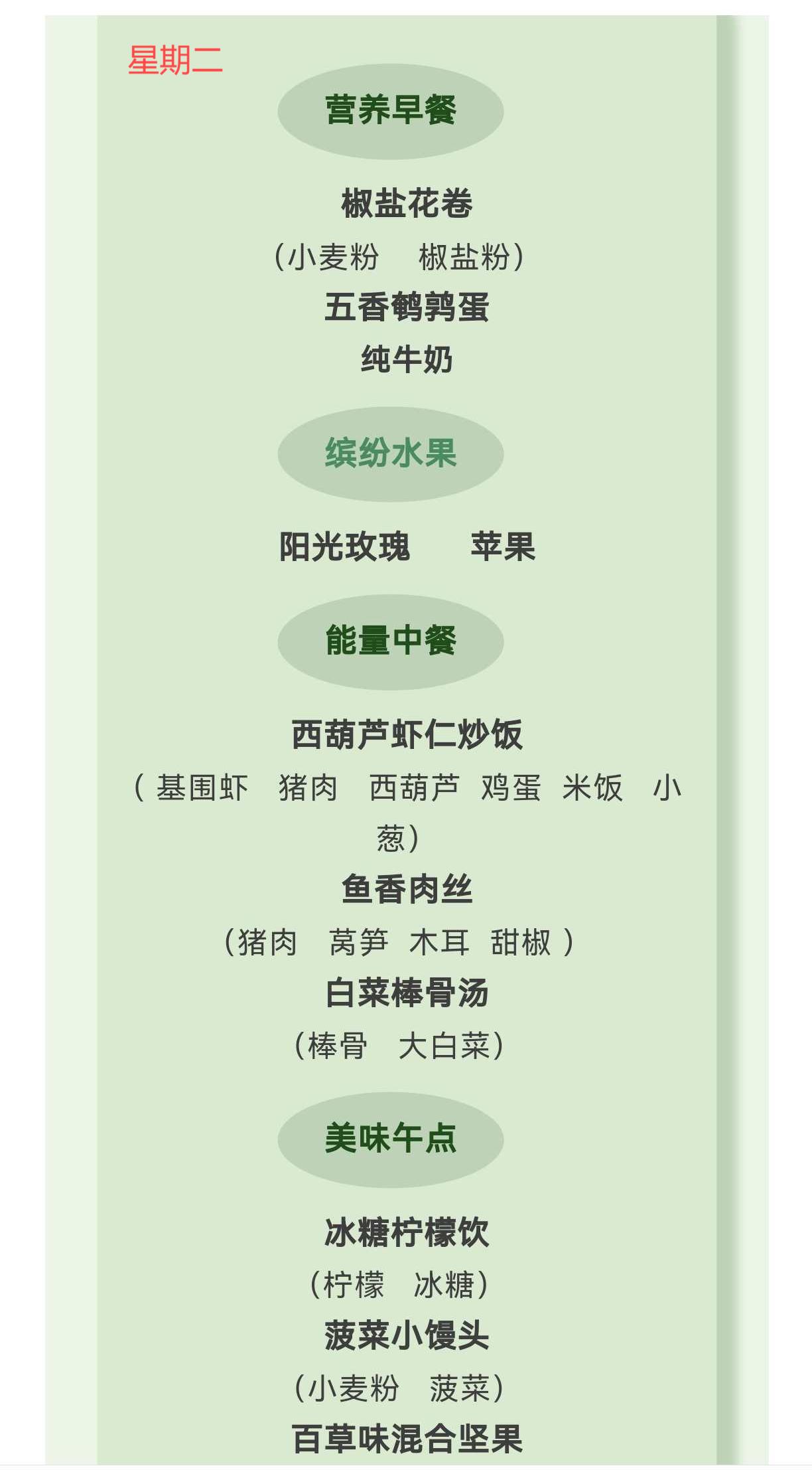 【亲宝“食”光 】柳城幼儿园2025秋季第5周食谱