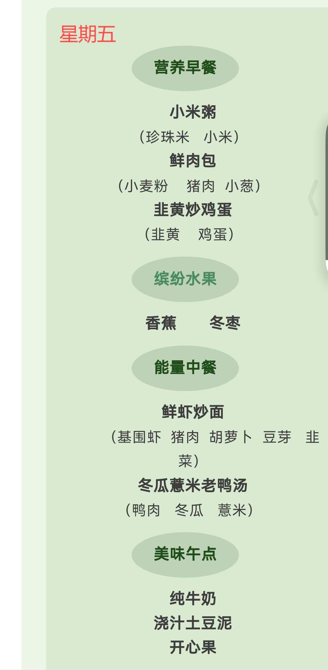 【亲宝“食”光 】柳城幼儿园2025秋季第6周食谱