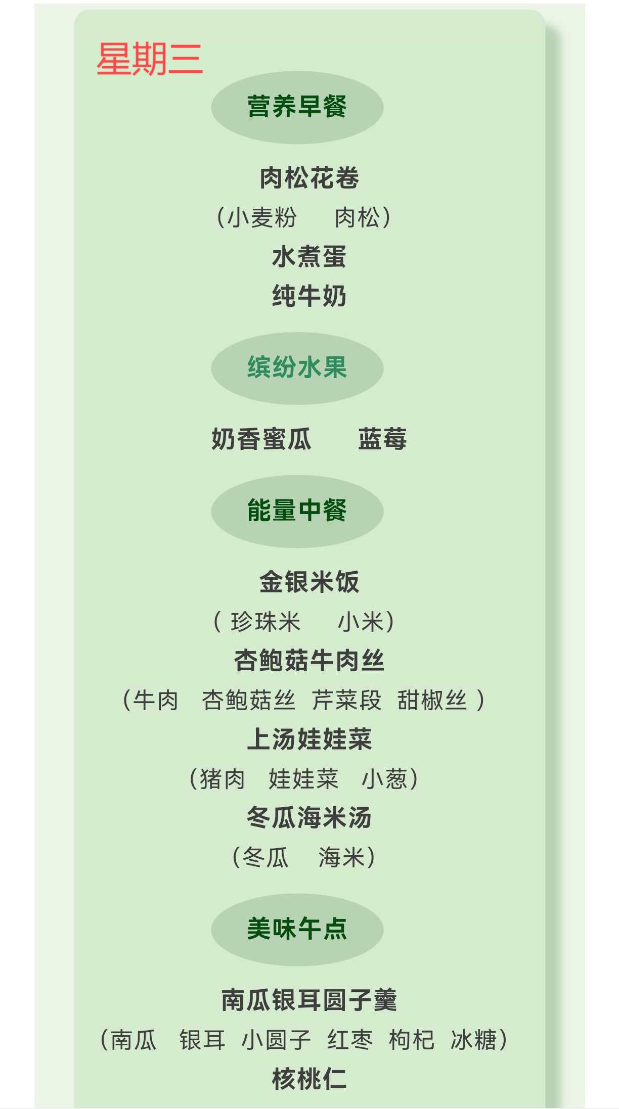 【亲宝“食”光 】柳城幼儿园2025秋季第8周食谱
