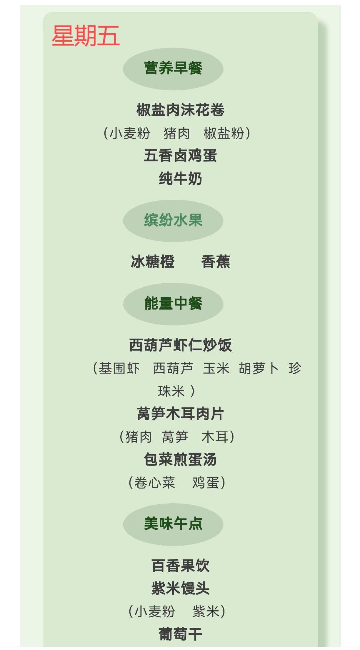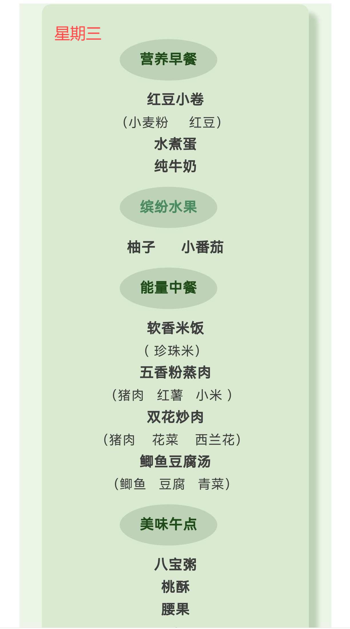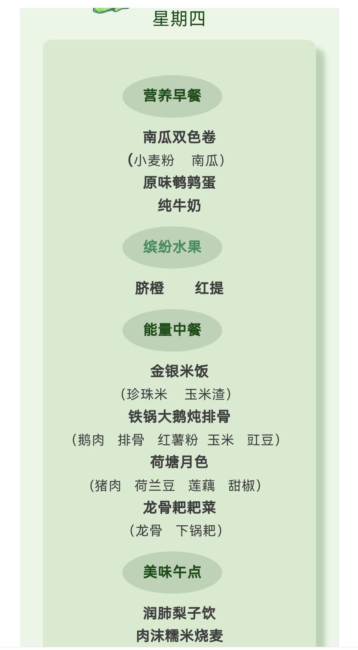 【亲宝“食”光 】柳城幼儿园2025秋季第11周食谱