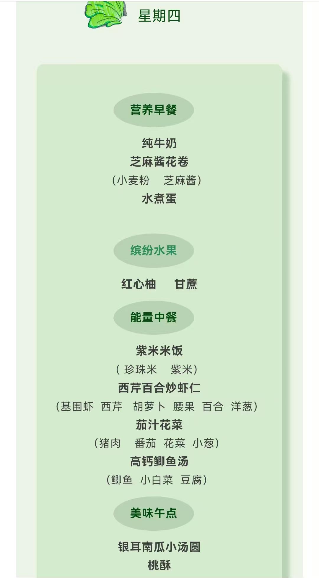 【亲宝“食”光 】柳城幼儿园2025秋季第14周食谱
