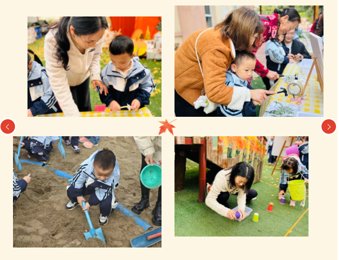 飘落的树叶为小路铺上地毯在“多彩的秋天”主题中,孩子们聆听落叶歌唱,拥抱瓜果香甜,看色彩跳舞,尝收获喜悦,编织童年也编织秋天,这个秋天有太多的惊喜想要与您分享。