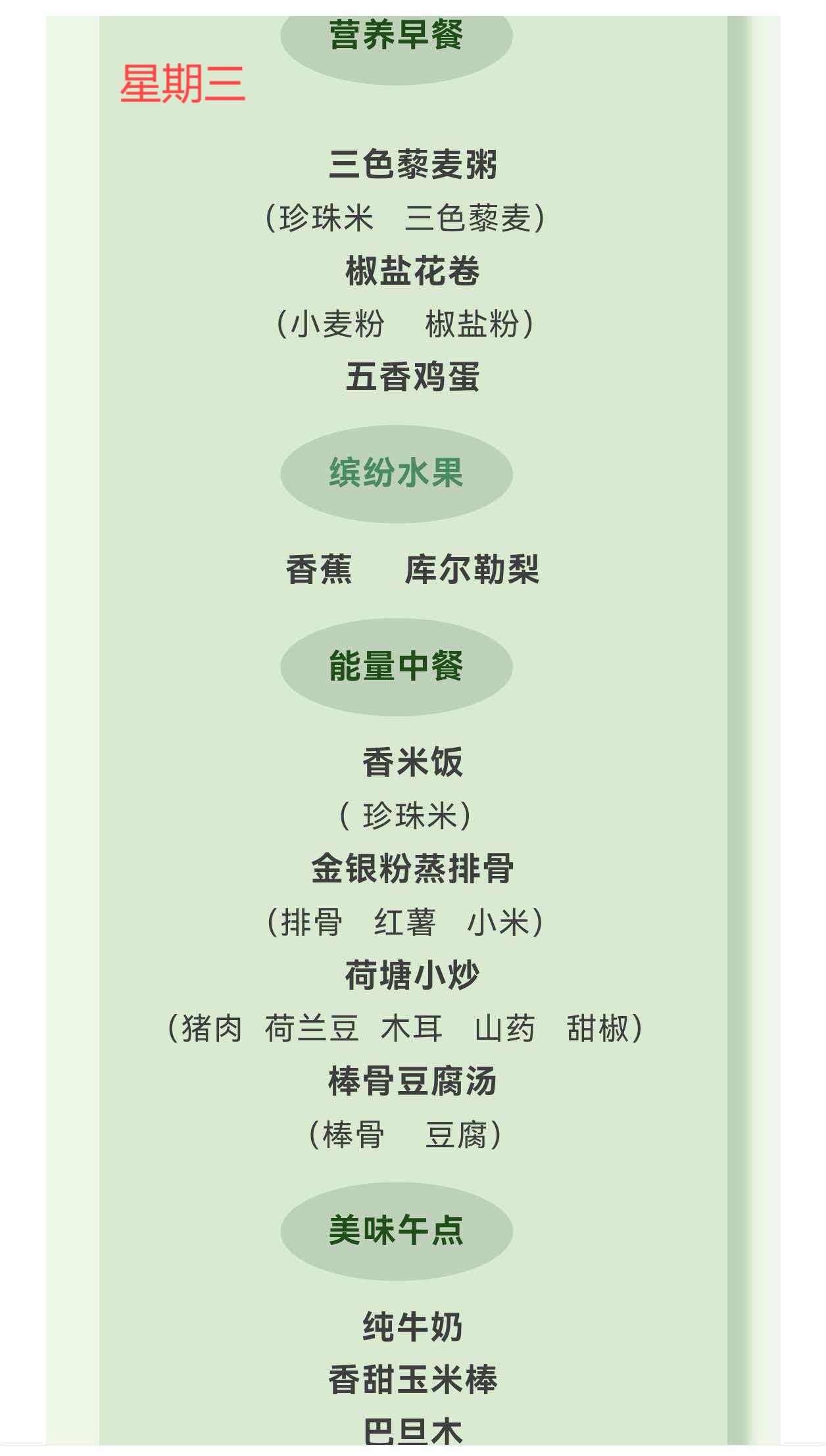 【亲宝“食”光 】柳城幼儿园2026春季第1周食谱