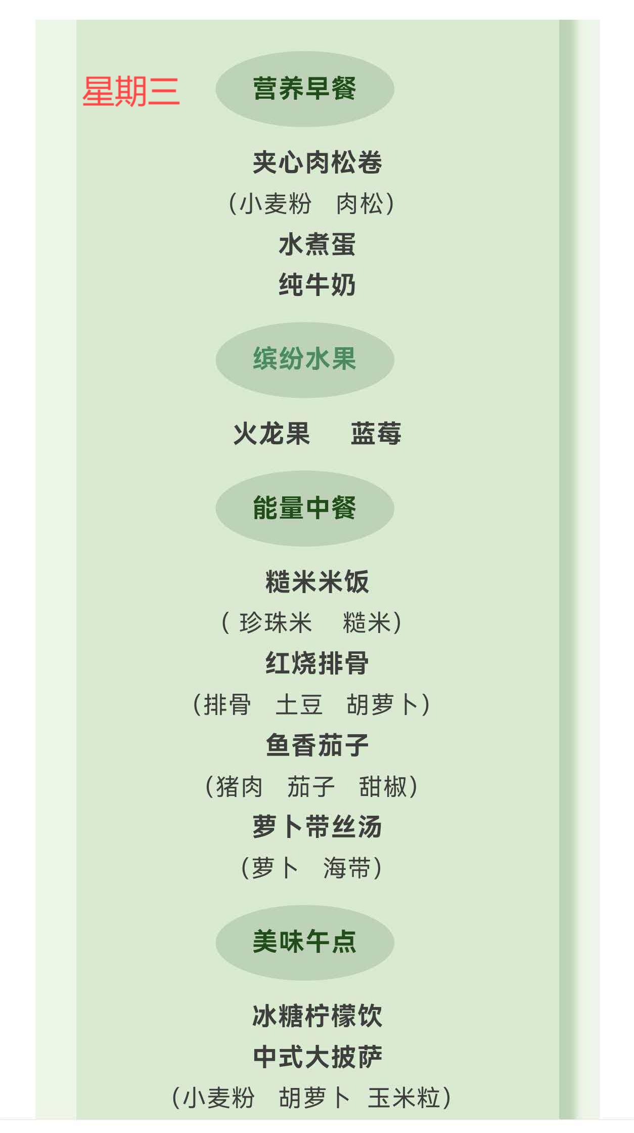 【亲宝“食”光 】柳城幼儿园2026春季第3周食谱
