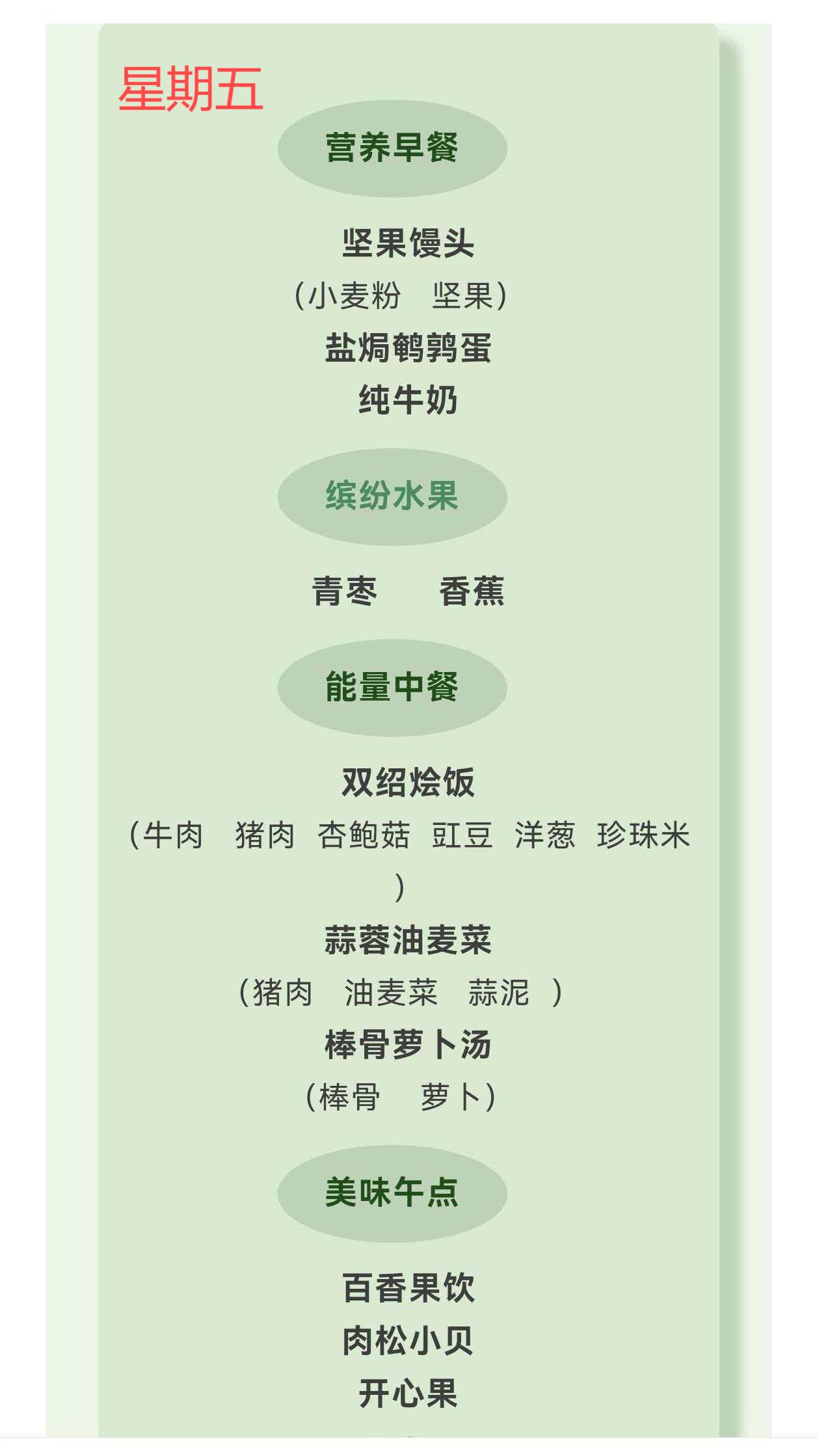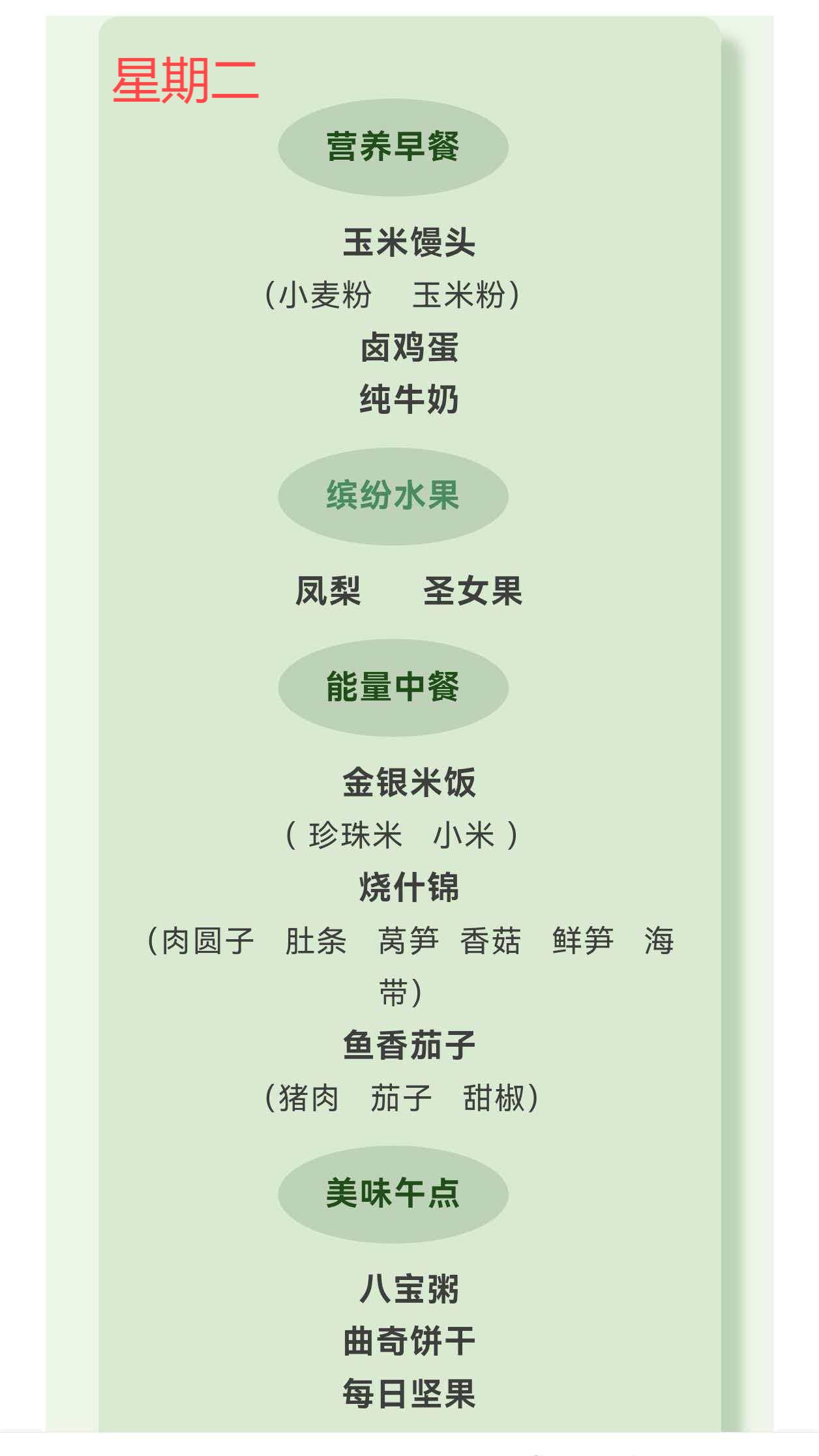 【亲宝“食”光 】柳城幼儿园2026春季第6周食谱