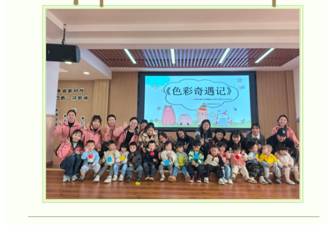 红的黄的蓝的绿的,跟着音乐拍拍手在欢快的《颜色歌》律动中。萌娃与家长亲密互动,拉近距离,唤醒活力,快速融入集体氛围。